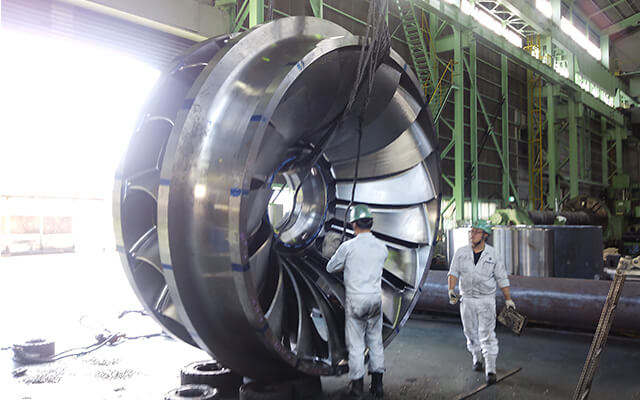 フクトクグループは、発電所のタービン、コンプレッサーといった、社会基盤を支える超大型部品加工を得意としています。